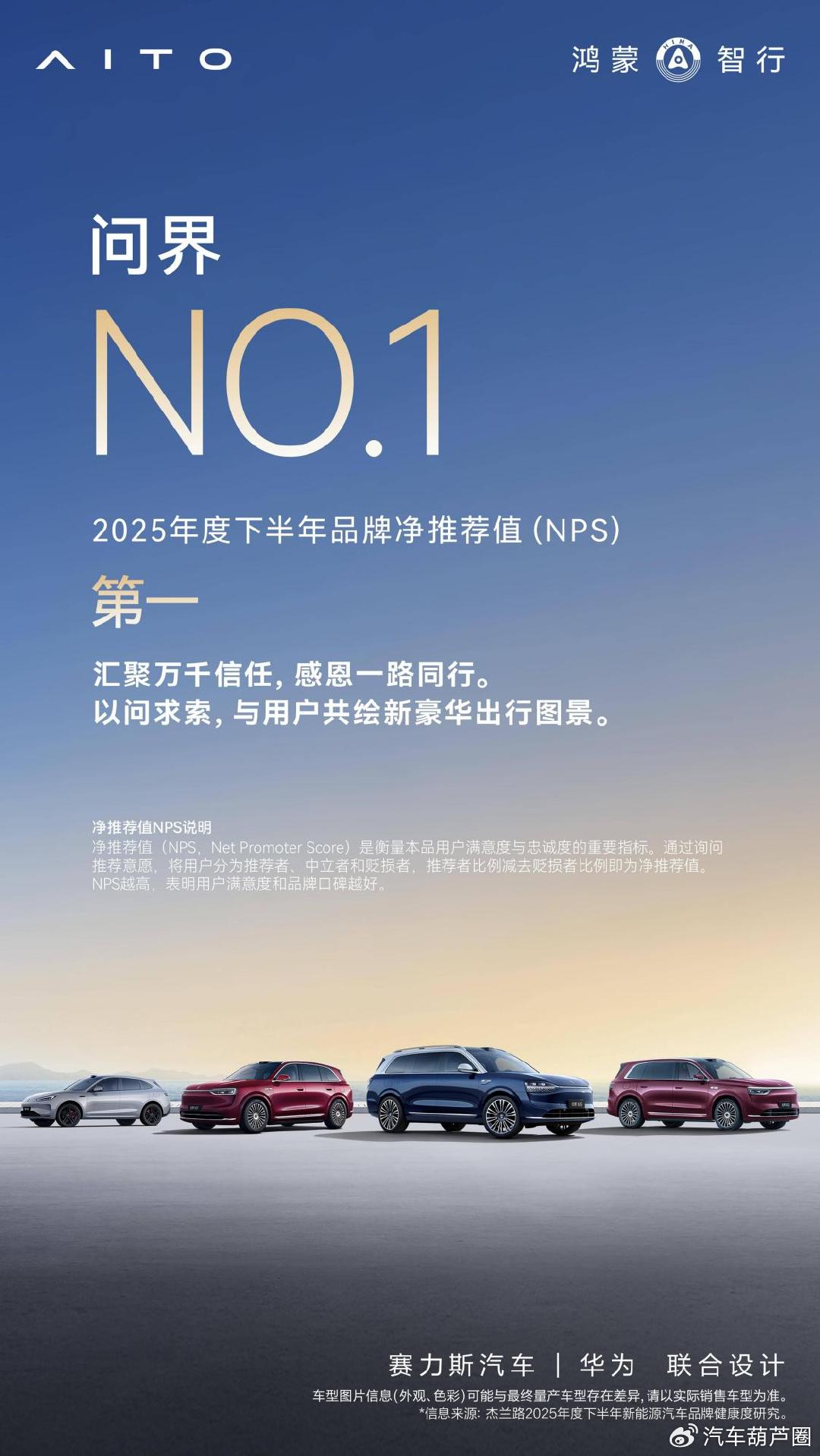 在这三大维度中,问界M9的口碑表现尤为耀眼。作为衡量用户忠诚度与含金量的核心指标,其净推荐值(NPS)创下了新能源SUV领域的里程碑式纪录:它是新能源SUV车型中第一个、唯一一个在杰兰路研究报告中实现连续四次蝉联总榜NPS第一的车型。2025年度上半年,其NPS得分达85.2分;下半年更以89.2分的高分卫冕,持续领跑行业。