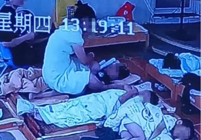 ▲老师直接坐在孩子身上红星新闻记者采访了解到,目前,荷塘区教育局整顿指导小组已进驻该幼儿园开展工作,整顿期间不得擅自开园营业。24日下午,荷塘区教育局相关工作人员告诉红星新闻记者,此事仍在调查处理中。