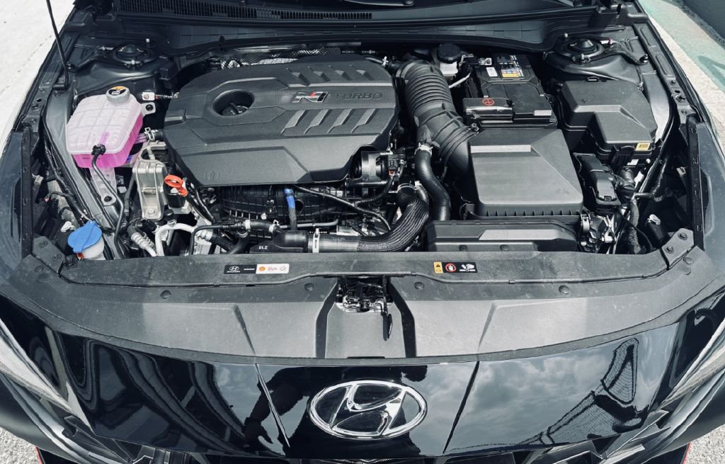 虽然只是Elantra,狭小的发动机舱只能摆放着横置4缸的2.0T发动机,但280Ps和392N·m的参数着实不容小觑,在N Grin Shift超增压状态下可以压榨到290Ps,推动这辆轴距只有2720mm、整备质量不到1500kg的紧凑型轿车绰绰有余,这也让Elantra N拥有了能在5.8秒内破百的能力,对于一台原厂的前驱车来说几乎已经达到了物理层面的极限。