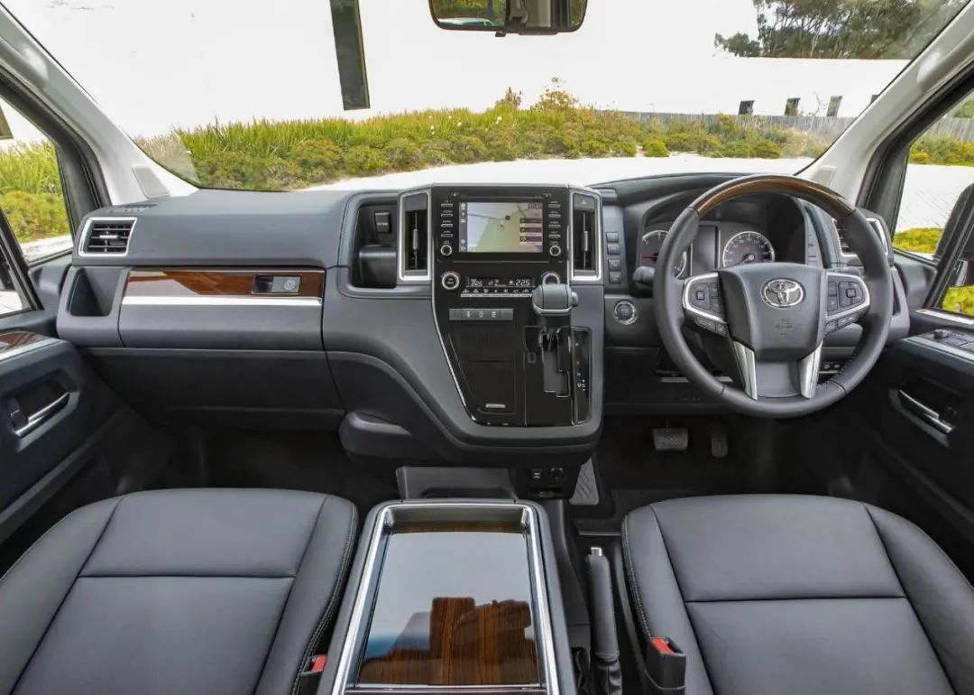 超大尺寸的前格栅,用镀铬饰条进行了装饰,以此体现出GRANVIA的豪华感。大灯虽然形状和HIACE相似,但是采用了更先进的全LED大灯,在视觉效果上也更为高级。在车身侧面和车尾,GRANVIA保持了HIACE方正的线条。不过全新造型的尾灯,采用了“L”形状,搭配镀铬饰条后显得更具辨识度和豪华感。在车身尺寸方面,丰田GRANVIA的长宽高分别为5300/1970/1990毫米,轴距为3210毫米。