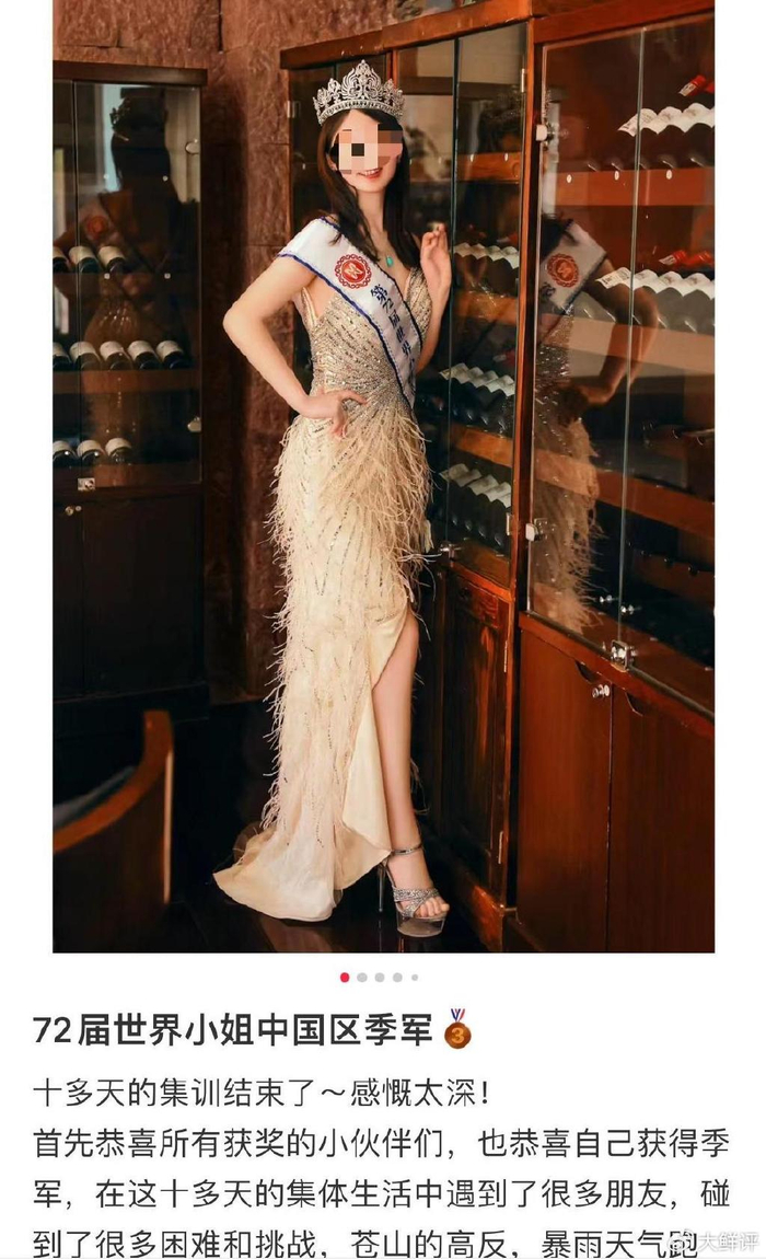 该博主身份不一般,她此前曾在社交平台上发文,透露自己参加世界小姐获得了季军,为此花费了大量的时间。