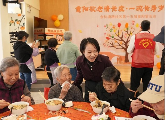 10月28日上午,在余杭塘路社区书记李晓燕代表的精心组织下,一场以“重阳敬老情长在·一碗长寿岁岁安”为主题的活动温情上演。李晓燕代表深知,敬老不仅是节日的问候,更是日常的守护。在与王伟丰代表筹划社区重阳宴时,王伟丰代表当即表示,余杭塘路和塘河新村两个社区的重阳宴水果全部由他赠送,关心关爱老人,他这个代表必须出一份力,众人大代表一起合力打造了一个集温情、服务与保障于一体的爱的港湾。在人大代表的带领下,社区党员、社区志愿者行动起来了,创新地将社区纪检监察联络站成员纳入志愿服务队,他们在引导帮助老人的同时,也巧妙地将清廉之风吹入人心。通过这场活动,不仅传递了节日的快乐,更织密了一张社区为老服务的“安心网”。