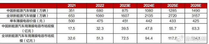如果按照薄膜电容使用的场景来看,以新能源汽车为例,据专业机构预测,到了明年,我国和全球新能源汽车对薄膜电容的需求分别约为63和134亿元,近五年的复合增长率都超过了15%。所以可以说是结构性的机会。