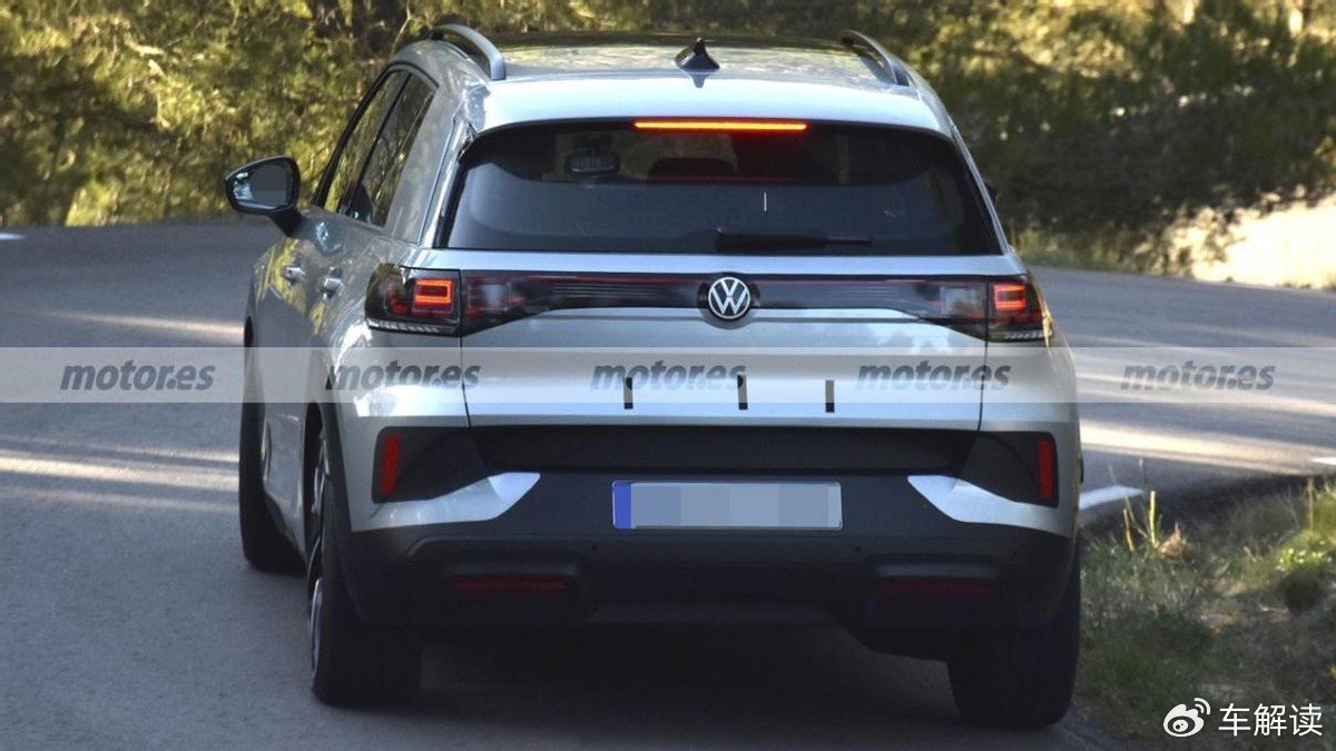 从车尾来看,贯穿式尾灯还是挺显眼的,大众ID.Cross的双矩形尾灯采用了围绕设计来嵌入转向灯、后雾灯,这与此前的概念车是一致的。而后保险杠因为抬升角度比较大,其包括示廓反光带在内的装饰结构似乎采用了与尾灯相呼应的造型。不过,仔细观察就会发现,这种黑色效果的一部分其实是一些比较刻意伪装车衣,其更有可能采用八字形倾斜的后导流来进行保险杠装饰。但无论如何,较大的抬升角度还是有利于增加车尾离去角的,虽然有可能给重物装卸带来一定影响,但也算是比较务实的设计了。