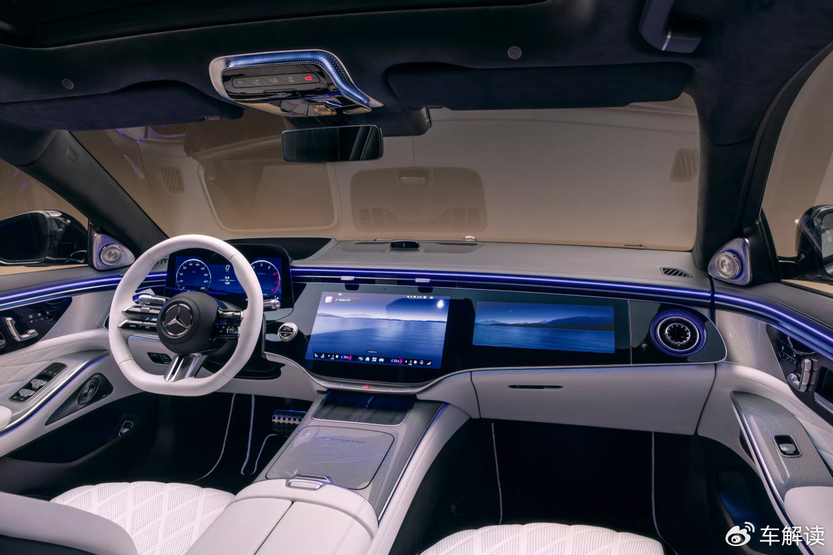 在内饰部分,除了方向盘前端的12.3英寸悬浮式仪表盘外,一整块玻璃面板还完成了对中控与副驾娱乐屏的整体覆盖。更重要的是,这处属于MBUX Hyperscreen的硬件还利用DLC技术,实现了光学控制,让驾驶人与副驾乘客能够在驾驶中获得多媒体支持时,都不会受到视觉上的影响。这样一来,驾驶者的专注力也能得到保障,让出行变得更安全,这其实才是使用所有智能系统的前提与基础。