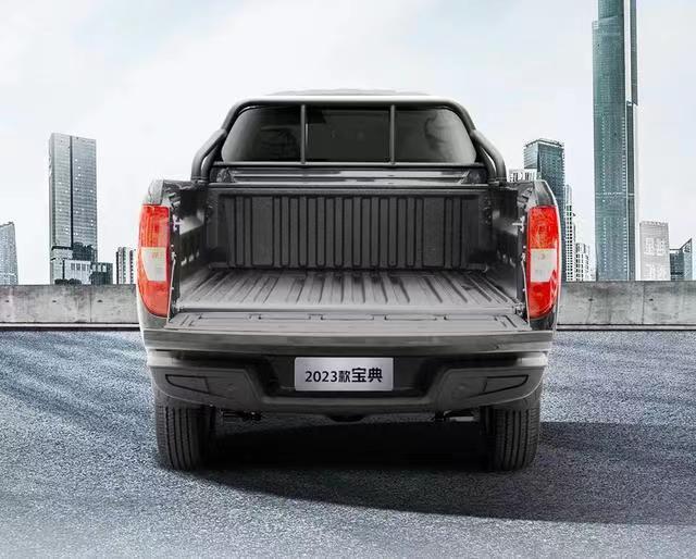 首先在外观方面,这款车整体的外观设计采用的是全新的设计语言,前脸的进气格栅造型看上去比较的方正,内部进行了熏黑的处理,并加以很多粗壮的黑色饰条点缀,提升了整个前脸的时尚感,再搭配左右两侧造型比较犀利的大灯组,给人带来不错的视觉冲击力,在车身尺寸方面,新款江铃宝典的标轴版车型长宽高分别为5301毫米,1905毫米,1782毫米,轴距为3085毫米,长轴版的车型长宽高分别为5656毫米,1905毫米,1782毫米,来到车身尾部,最吸引人的就是新款江铃宝典提供了平底货箱版本,提高了空间利用率。