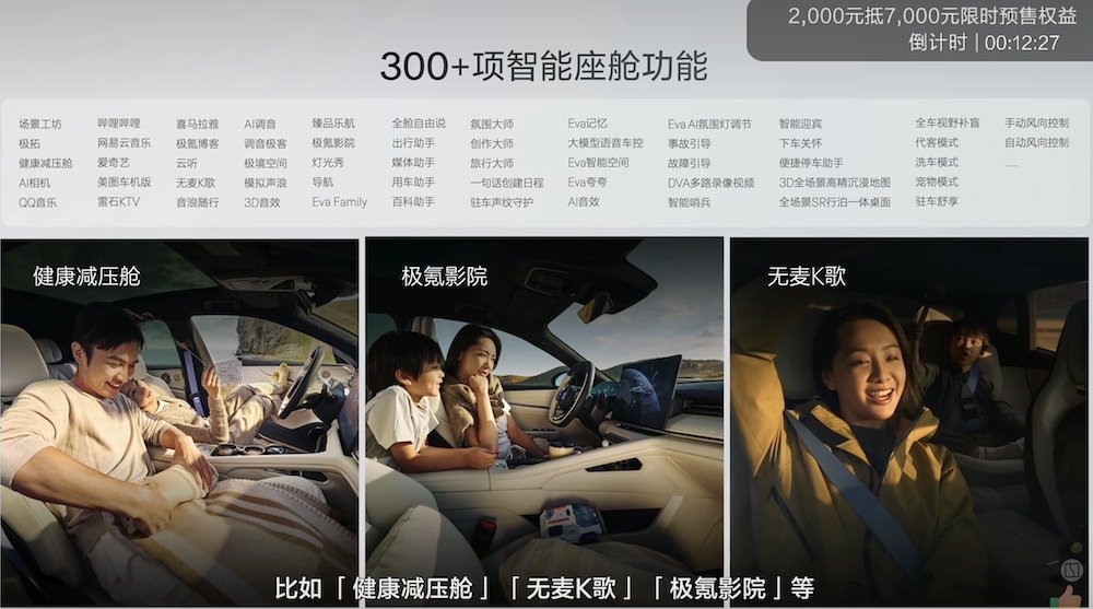智能座舱方面,焕新版极氪001还带来了300多项座舱功能,致力于营造一个沉浸的第三空间。
