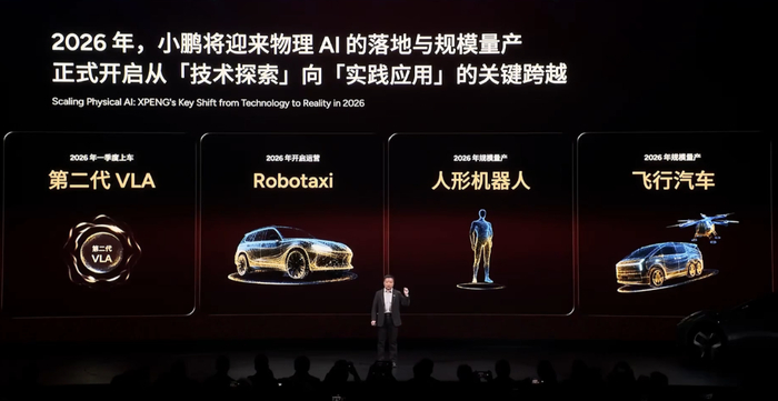 深化物理AI布局,VLA 2.0、Robotaxi、人形机器人、飞行汽车都将在今年量产落地。