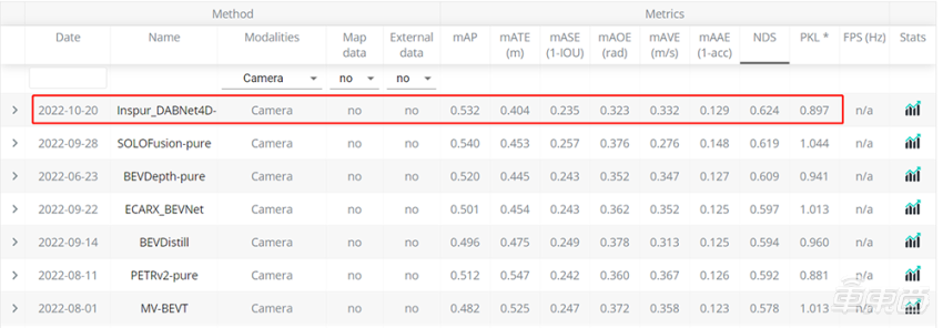比如最近在NuScenes数据集的3D目标检测比赛中,浪潮自动驾驶团队的DABNet4D算法一举拿下了第一名的成绩——NDS综合检测精度0.624,较2021年的第一名提升了16个点,进步明显。
