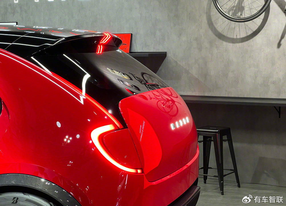外观方面,车头部分采用了全封闭式的进气格栅,格栅两侧设计了两条极为醒目的、类似“獠牙”形状的发光灯条,这些灯条直接与小巧的主前大灯相连,形成了一种独特的视觉效果,极具辨识度。整个前脸造型圆润,线条简洁流畅,摒弃了复杂的棱角,有助于降低风阻。外后视镜则直接采用了先进的电子式外后视镜,进一步强化了整车的科技感和未来感。