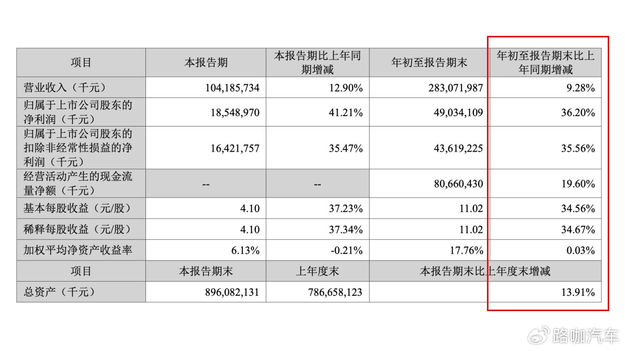 但,宁德时代不同,它是依然保持了“宁王”的状态。它在第三季度财报中的数字为,单季实现营业收入1041.86亿元,同比增长12.9%;归属于上市公司股东的净利润高达185.49亿元,同比大增41.21%。前三季度,净利润490.34亿元,同比增长36.20%,平均每天净赚约1.8亿元。