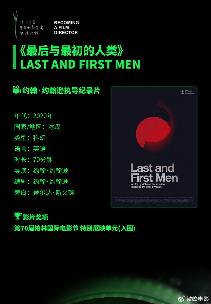 本次青葱计划“成为导演之前-电影的本来与未来”主题影展同样邀请到由蒂尔达·斯文顿担任旁白的《最后与最初的人类》作为开幕影片,该片由约翰·约翰逊(Jóhann Jóhannsson)执导,曾入围第70届柏林国际电影节特别展映单元。导演及主创团队用先锋的手法呈现了一种未来人类世界的景象,蕴含独特而丰富的美学和文化涵义。铁托时期南斯拉夫留下的巨大建筑“Spomeniks”,在黑白影像交织中,谱写出一曲关于人类未来的壮丽交响曲。