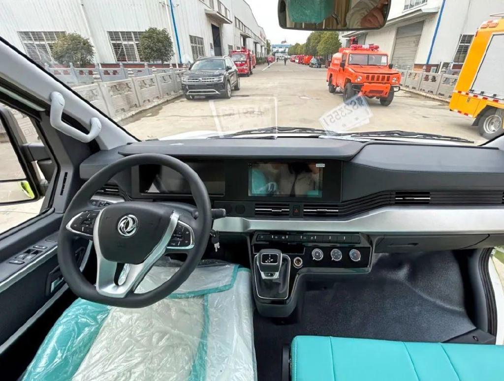 本车基于东风御风底盘打造,动力方面搭载2.0T柴油发动机,匹配7速双离合变速箱,最大功率100kW,峰值扭矩为300N·m,蓝牌C本即可驾驶。整车采用承载式车身结构,相比非承载车身结构的货车底盘,前者舒适性更高。内部采用5座布局,前三后二,驾驶室配备3张座椅,加上后排2张座椅,整车核载人数可达5人。