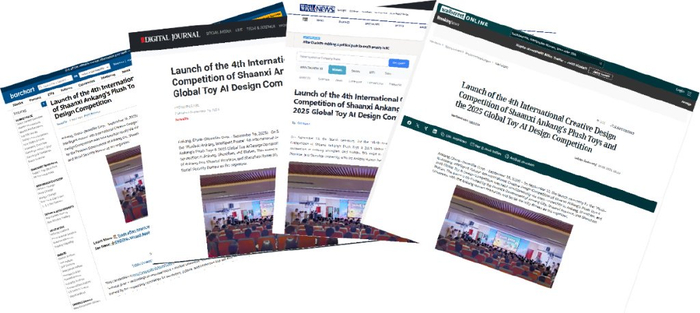 近日,由安康市人民政府与深圳大学联合主办的“绒爱(AI)安康・智创未来”第四届中国・陕西安康毛绒玩具创意设计国际大赛暨2025全球玩具AI设计大赛启动仪式在安康、深圳、武汉三地同步举行。“AI国际传媒平台”对赛事的启动仪式深度报道,美联社、美国早晨新闻、华尔街内参、道斯琼市场观察、华尔街在线、环球邮报、金融邮报、世界电子周刊、国家邮报、德国开放新闻、德国财经杂志以及雅虎德国、新加坡、英国、法国、加拿大、澳大利亚、英文频道等535家媒体关注。
