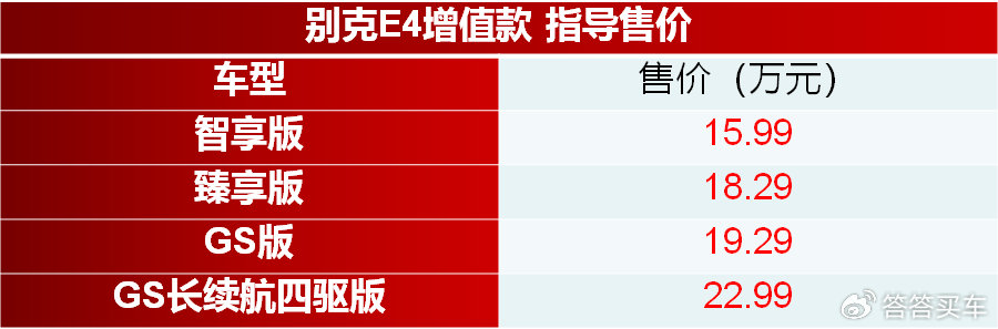 2月21日,上汽通用别克旗下的别克E4增值款车型正式上市,4款车型的售价在15.99万-22.99万元之间。