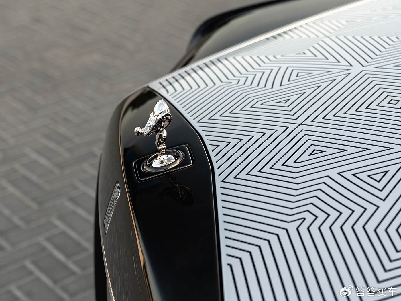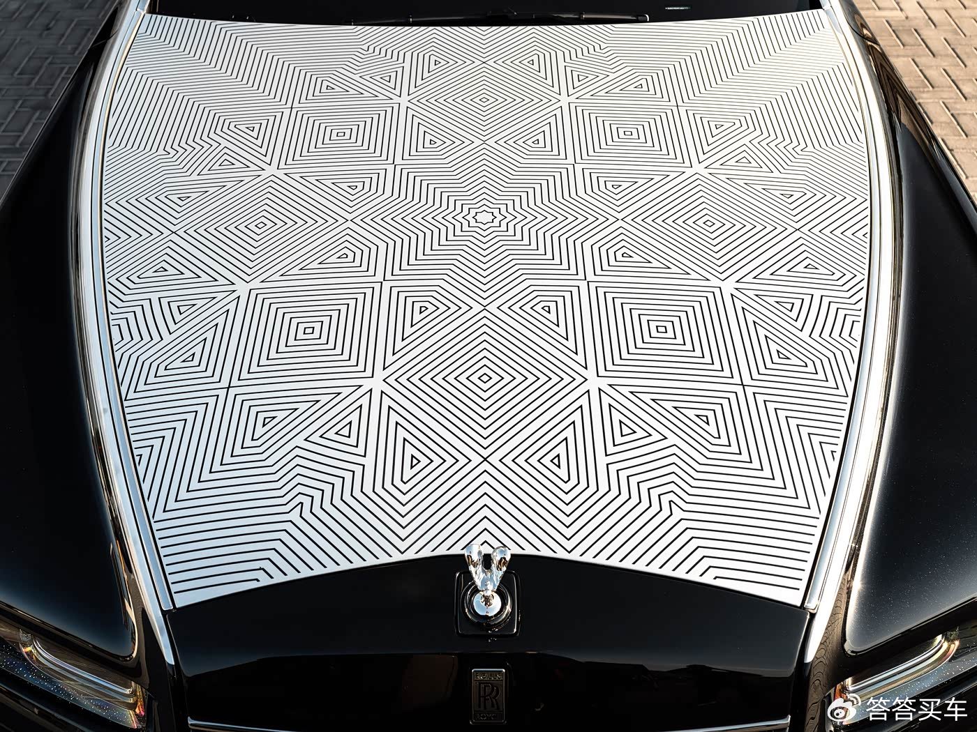 外观方面,新车外观采用上银下黑的双色车身,轮圈的配色方式与车身相似。新车机舱盖上的激光雕刻工艺由劳斯莱斯历时5年研发,图案的灵感源自中东Mashrabiya艺术,是中东传统房屋、宫殿、庭院中常见的图案。