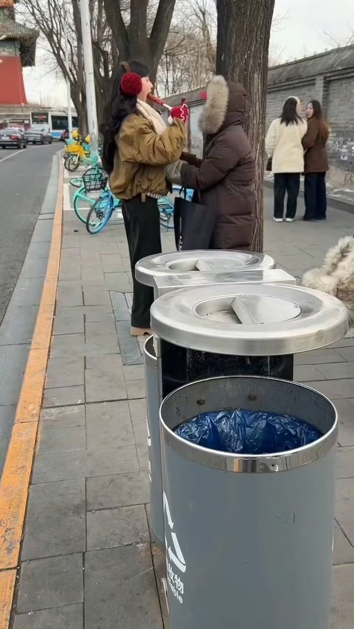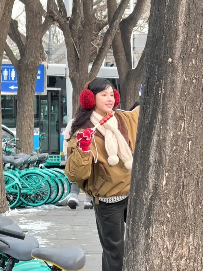 @陈都灵 买糖葫芦被偶遇!蹦蹦跳跳的样子像只灵动的小兔子,眼里全是对糖葫芦的喜欢,这份可爱直接甜到心坎里了