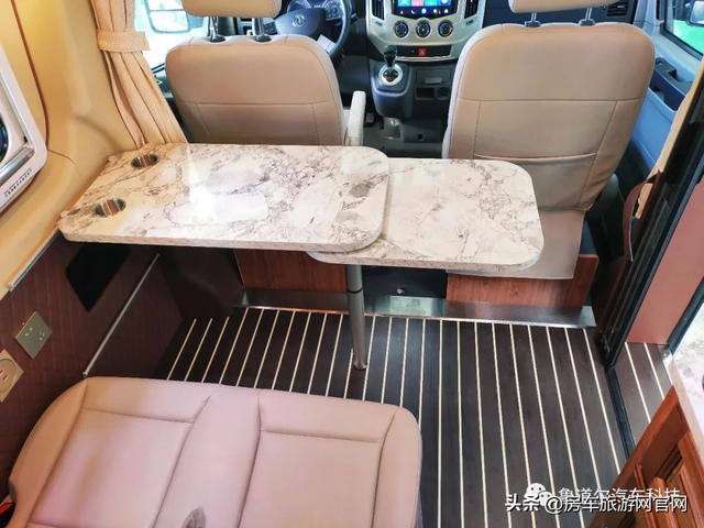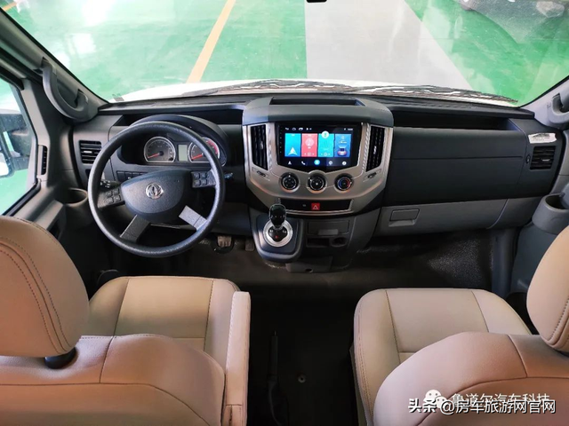 驾驶舱内空间宽阔,视野良好,与C型房车相比,没有了顶部额头床的设计,驾驶舱的可活动空间更大。主副驾驶座椅均采用符合人体工学设计的真皮全包覆座椅,纳帕皮全包覆座椅质感极佳,可多项调节的座椅能够充分满足您在驾驶过程中的不同需求,也能在最大程度上降低由于长时间驾驶所造成的的身体疲劳,为您带来良好的驾乘体验。此外,驾驶舱内 配备大屏语言导航,可与手机互联,还配有多功能方向盘、定速巡航、倒车影像及倒车雷达、主副驾驶安全气囊、ABS+EBD、车道偏离预警、胎压监测等多种设备,全程为您的旅途保驾护航!