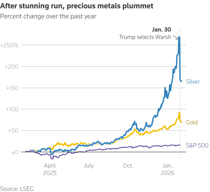 在美国总统唐纳德·特朗普决定提名前美联储理事凯文·沃什接替即将离任的美联储主席杰罗姆·鲍威尔之后,美元在过去两个交易日的反弹引发了金属市场的暴跌。