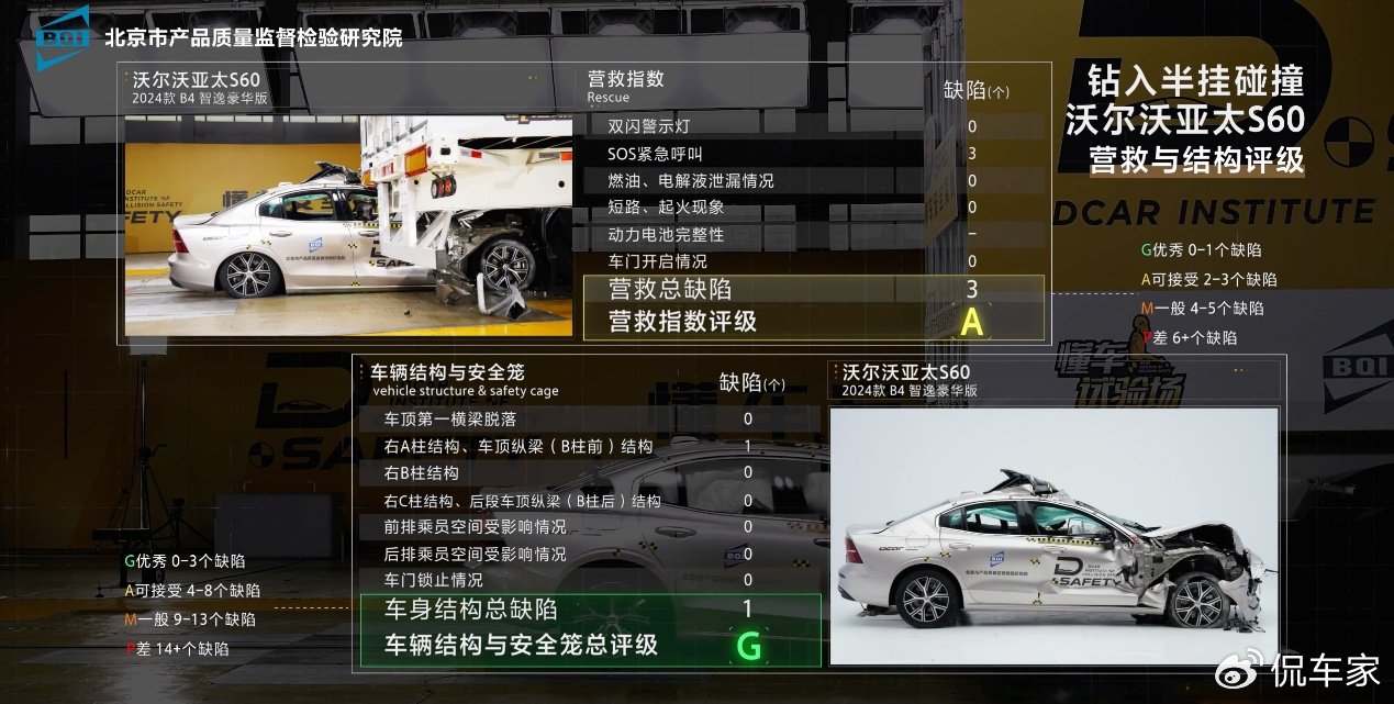 如果说安全是沃尔沃深入骨髓的品牌基因,那么一次次严苛的碰撞测试则是其安全实力的最好佐证。之前,在懂车帝平台进行的涵盖30款车型的大型碰撞安全测试中,沃尔沃S60(配置|询价)在燃油车领域取得了最佳成绩。在极具挑战性的碰撞瞬间,S60的A柱表现坚挺,纹丝不动,乘员舱结构保持完好,展现出极其优秀的车身刚性设计和吸能效率。这份来自第三方权威平台的“硬核”成绩单,无疑强有力地证明了S60安全标杆的称号当之无愧,使其毫无争议地屹立于最安全的豪华中级车之列。这份对安全的极致追求,为选择S60的年轻用户提供了超越同级的安心保障。