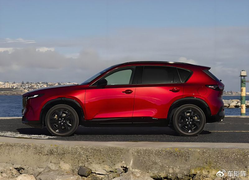 日前全新一代马自达CX-5官图正式发布,国产版或于2026年量产上市,先期会推出2.5L燃油版自吸引擎,2027年会推出混动版本,同时仍然与CX-50同堂销售。新车秉承马自达魂动设计理念,大灯组的变化比较明显,采用锐利的回旋镖形状,车身尺寸为4690/1860/1695mm,轮毂形状为五辐式,动感十足。车顶和尾部采用黑化处理增强了整车动感。