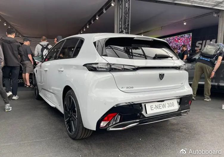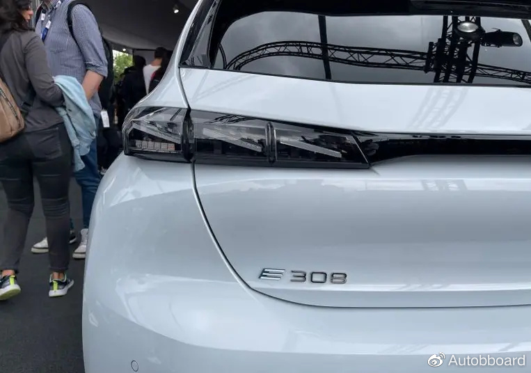 尾部,最引人注目的便是熏黑的尾灯设计以及下方银色的排气装饰。当然,标致E-308作为一台纯电车型自然是没有真实排气的。另外与燃油版车型最大的不同点,便是车尾左侧标识上的“E”字符。