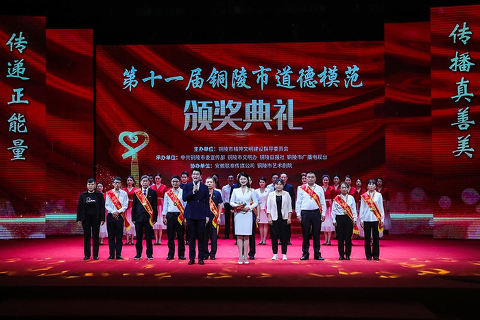 第十一届铜陵市道德模范颁奖典礼。铜陵市委网信办供图合肥先后开展“清朗∙整治短视频信息内容导向不良问题”等10项专项整治行动;铜陵将整治自媒体乱象、涉企网络侵权举报作为深化网络综合治理的重要内容……一系列网络专项行动开展,网络家园更加清朗安全。