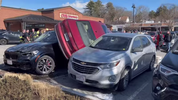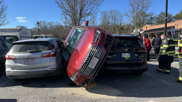 事故现场图片美国马萨诸塞州韦尔斯利市警方近日公布的一段影片向人们介绍了一种十分“创新”的停车方法。在视频中,一辆红色的奥迪A4(配置|询价)斜着夹在了两辆车之间,这一举动惊呆了众人。剧烈藕节,这起事件发生在罗氏兄弟超市外,根据现场视频,奥迪似乎越过了分隔两排停车位的路边绿化带,直接跳到了宝马X5(配置|询价)的引擎盖上,然后停在了它和雪佛兰Equinox之间。