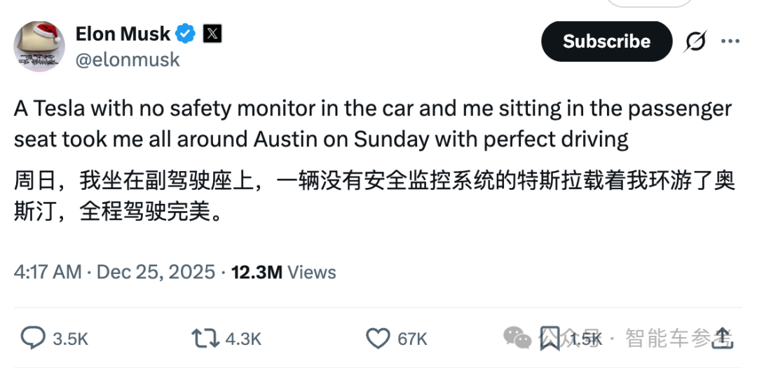 巧了不是,Waymo刚回应旧金山事件,马斯克就秀了特斯拉Robotaxi取得的最新突破。马斯克透露,自己周日坐在无人车的副驾上畅游了奥斯汀,这辆车没有安全员,体验很完美。