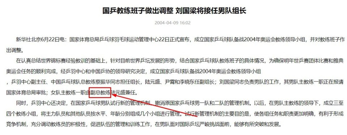 也正是在21世纪初那段时间,国乒的教练组发生了较大变动——首先是李晓东、尹肖分别成为女队和男队的教研组长,实际代行主教练职务,但两人很快因为大赛带队成绩不佳而离职,随后刘国梁接替尹肖、陆元盛重新执掌女队帅印,但不久后也退出了教练组的竞争。