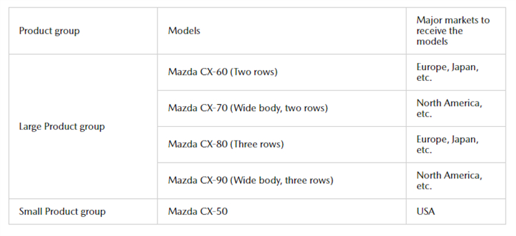 除此之外,对于马自达主销的欧洲市场与本土市场,马自达也做出了详细规划。欧洲和日本的道路较窄、停车场较小,将欢引入两排座椅 CX-60 和三排座椅 CX-80。欧洲市场将主要推出直列四缸汽油发动机和电机驱动的插电式混合动力车型,新一代直列六缸Skyactiv-X汽油发动机和Skyactiv-D柴油发动机也将与48V轻度混合动力系统相结合推出。由于日本本土对柴油发动机的普及,配备 48V 轻度混合动力系统的直列六缸 Skyactiv-D 柴油车型和插电式混合动力车型将引入日本阵容。而道路较为宽阔、停车场相对比较大,且喜欢大尺寸车型的美国和其他国家,将会引入两排座椅CX-70和三排座椅CX-90。在重视高功率性能的北美,将推出涡轮增压直列六缸汽油发动机车型和插电式混合动力车型。