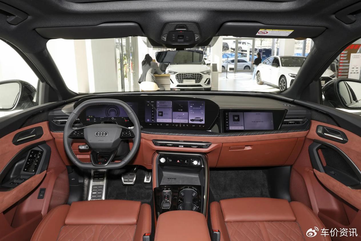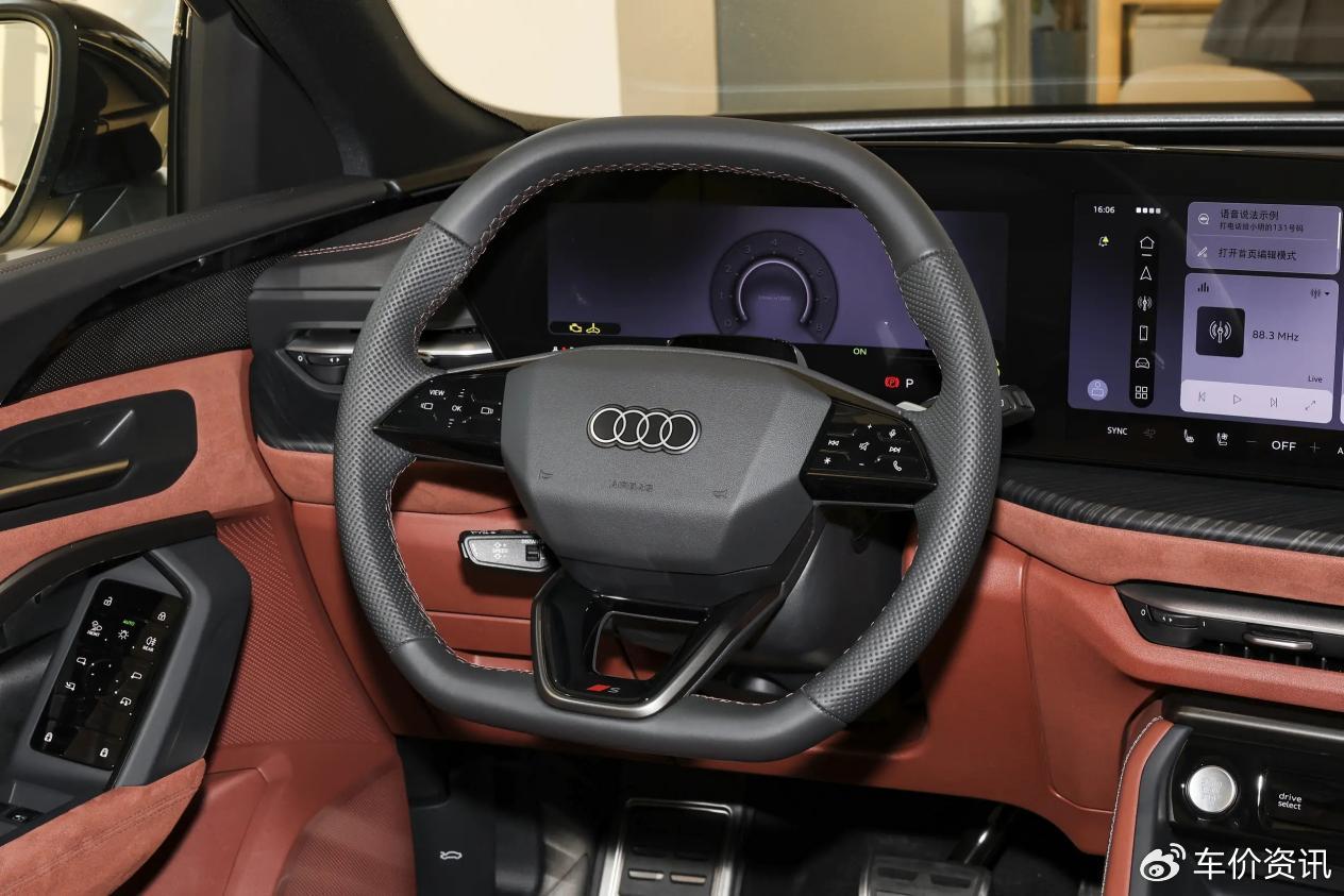 内饰方面,全新Q5L保持了全新A5L同款三屏设计,仅在细节上有些许不同。另外,新车增加了赤陶红、米色内饰颜色;全新棕色内饰审美也比老款高出一个围度,更有老钱感。不出意外,热度更高的赤陶红内饰,或是年轻朋友的主流选择。但这款颜色并未向入门款提供,需要上到“千万用户专享版”才能解锁。