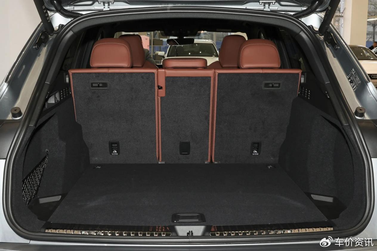 再一个,全新Q5L因配有48V轻混,并将电池布局在后备厢下方,导致尺寸加码的全新Q5L,后备厢基础容积从老款的550L,缩减到了494L。不过,全新Q5L后排靠背仍能4/2/4比例放倒,且后备厢进深不错,实用性依然可圈可点。