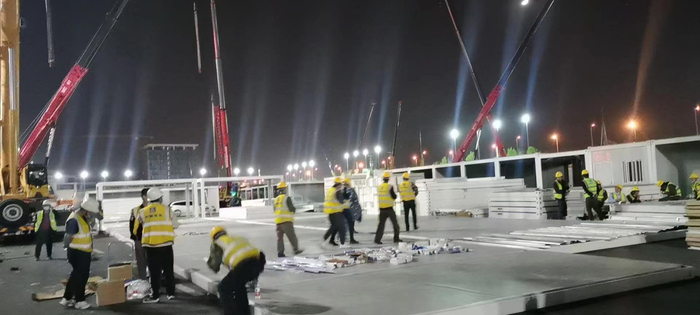 我们建设的是上海松江区的一座方舱医院,具体叫什么名字我不是很清楚,当时只想着手头的工作,根本没时间去了解那么多。建设方舱的工作很繁重也很辛苦,除了我们,至少还有上千人在那工作。
