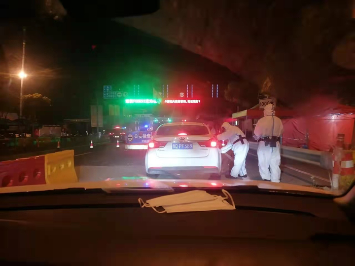 原本我们打算走高速回浙江,但当时很多高速路口都封闭了,路上也基本没看见什么车,我们怕上了高速下不来,就打算从国道回去。可国道也不好走。由于浙江防疫政策比较严格,需要提前向当地政府报备,可能是劳务公司没有对接好,我们在上海和浙江交界处的两座检查站中间滞留了两天。