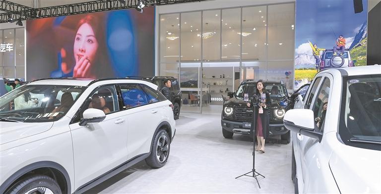 展区主播对着镜头,热情介绍自家车型的亮点。