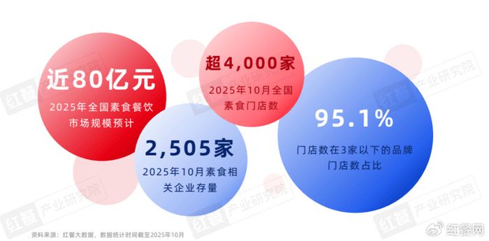 随着越来越多新派素食餐饮门店的开出,新派素食品牌进入快速发展期。据红餐大数据,2025年全国素食餐饮市场规模接近80亿元。
