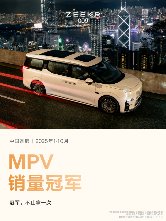与此形成鲜明对比的是,极氪009在香港市场表现强劲,稳居2025年1-10月香港MPV销量冠军,成为众多一线明星与顶级富豪的出行选择。