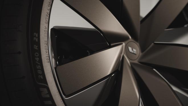 新车采用更显高档的双色车身方案,以三重喷漆与无阶差手工打磨工艺,达成了“贯穿式双色+独立腰线”的顶级水准,触感与反光效果浑然一体;车身比例上,22寸285宽轮胎搭配短前悬、长后悬设计,配合取消“Dolphin Nose”的俯冲式前脸、更宽大的D柱与高耸前机盖,进一步强化豪华体量感