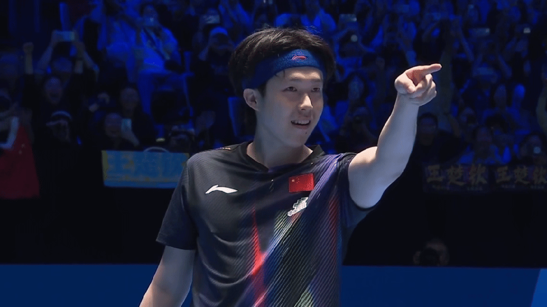 决赛首局王楚钦9-11惜败,第三局7-11再丢,总比分1-2落后。随后他及时调整,以11-5、11-8、11-6连胜三局实现逆转。