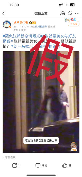 截至11月12日,张翰本人及工作室未直接回应,女方身份依赖媒体描述,存在误读可能;