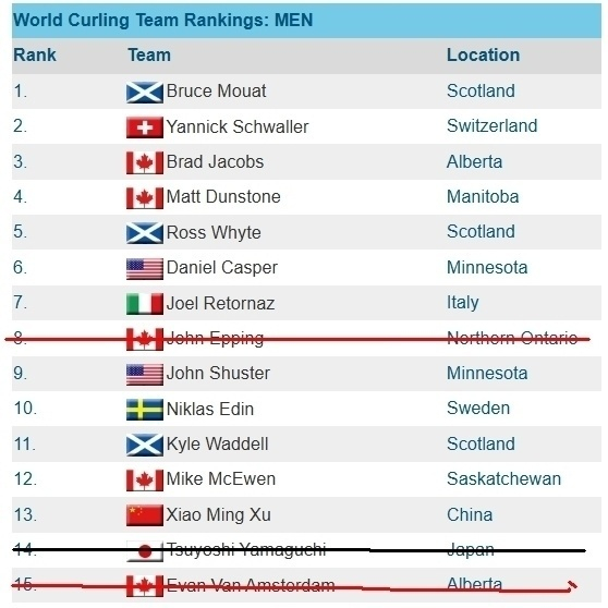 而原本受邀的日本-山口刚史和加拿大-阿姆斯特丹队,则因为宣布退出时间太晚,无法顺延给之后队伍,因此本站大满贯男子T1只有12支队伍参赛。