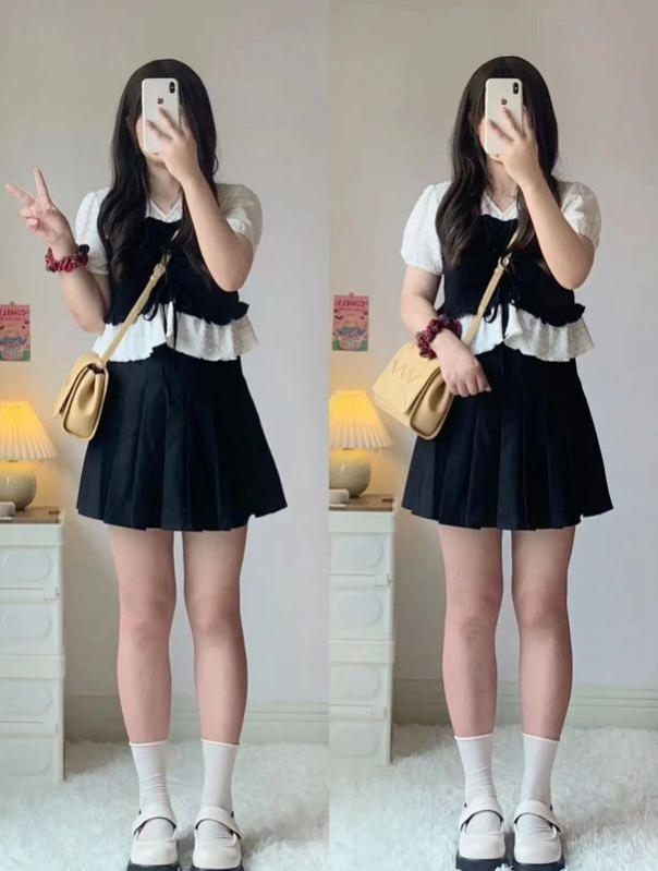 微胖女生的第二穿搭技巧是可以在搭配衣服时露出身材比较细的部分,如果女生的腿部比较纤细,可以搭配一件短裙,露出纤细小腿,强调腿部的纤瘦。推荐的短裙有A字裙以及蓬蓬裙。这一类都会在视觉上显得我们的腿部更加纤细。放大优势。