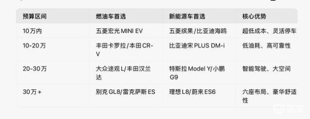 六、不同预算的首选车型推荐