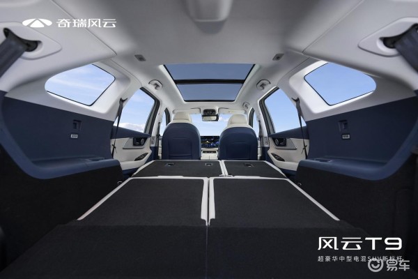 要展现出豪华舒适感,大空间是必备技能。风云T9车长4795mm,轴距2770mm,虽然尺寸算不上突出,但其通过出色的空间设计,“得房率”高达70.04%,并且有五座和七座可选,二三排座椅都支持一键放倒,还可以灵活实现12种组合方式,这空间利用率十分出色。