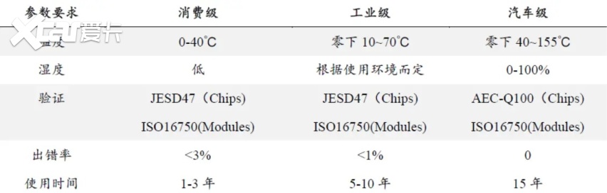 车规级芯片通常要保证在零下40度到150度以上都可以正常工作,还要能在振动的环境下用15年不坏,而消费电子级芯片要求就要低很多。