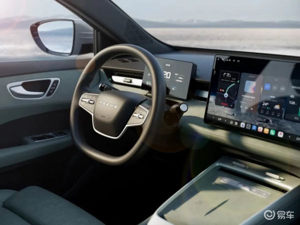 荣威D6的内饰也是没有丝毫多余线条,看上去舒服又实用,全液晶仪表盘+12.8英寸的中控大屏组合,也是大多数新能源车的方案,这种设计强调的就是实用性,大屏的清晰度看起来不错,但官方尚未给出具体参数。方向盘是双辐平底设计,三九点位置是多功能按键区域,整体设计与荣威D7的一致。