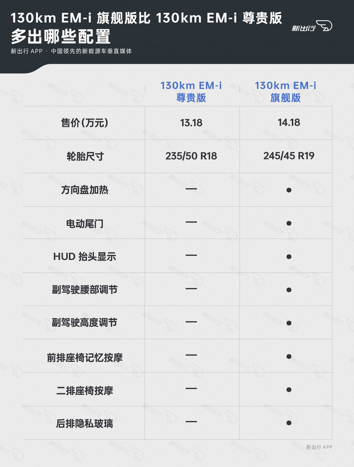 4、130km EM-i 旗舰版比 130km EM-i 尊贵版多出哪些配置