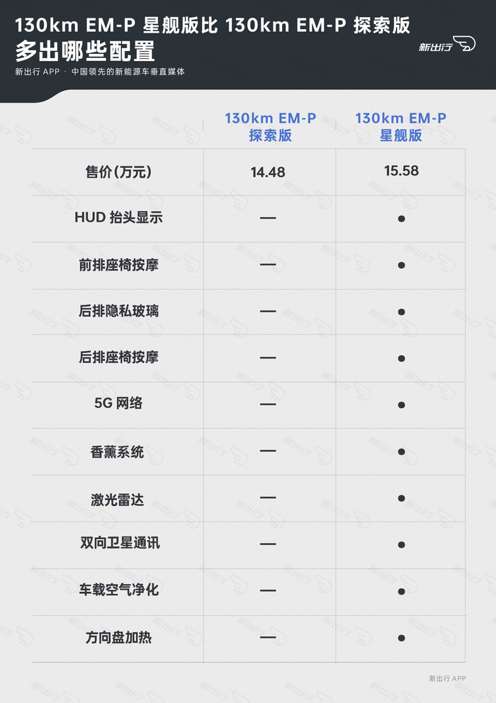 6、 130km EM-P 星舰版比 130km EM-P 探索版多出哪些配置