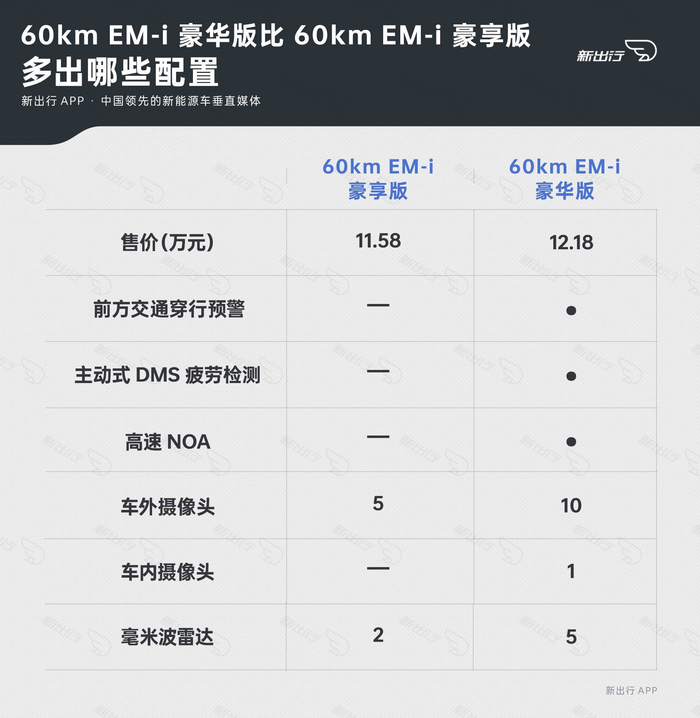 1、60km EM-i 豪华版比 60km EM-i 豪享版多出哪些配置